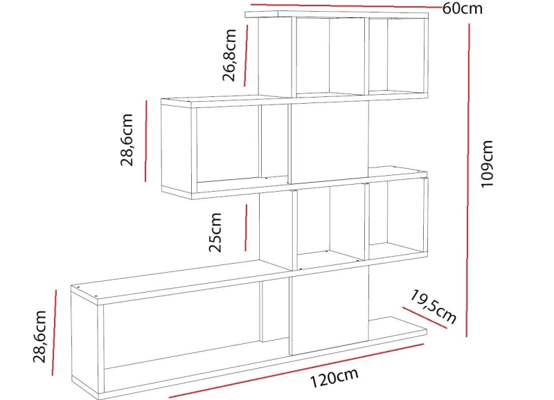 Celkové rozmery: Šírka: 120 cm Hĺbka: 19,5 cm Výška: 109 cm