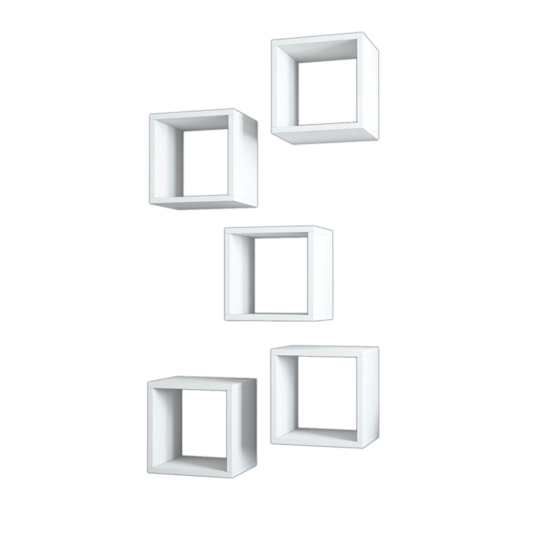 Zostava piatich nástenných políc BOX v rovnakom dekore.