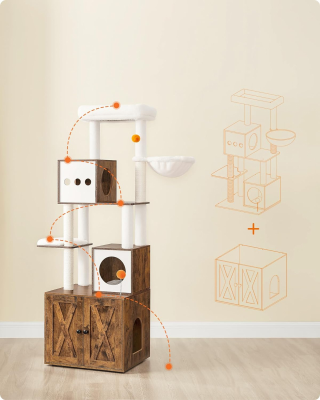 Domček pre mačky 2 v 1 kombinuje škrabací strom a mačací záchod, čím vášmu chlpatému priateľovi poskytne vlastný priestor a ušetrí miesto.