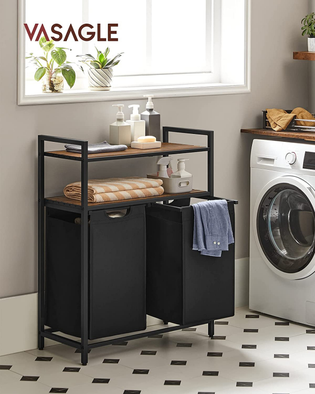 Overiť dostupnosť pre: VASAGLE Kôš na bielizeň s kovovým rámom a dvoma priehradkami
