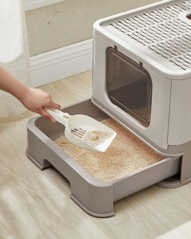 Vďaka svojej skladacej konštrukcii zaberá toaleta pre mačky minimum miesta, keď sa nepoužíva.