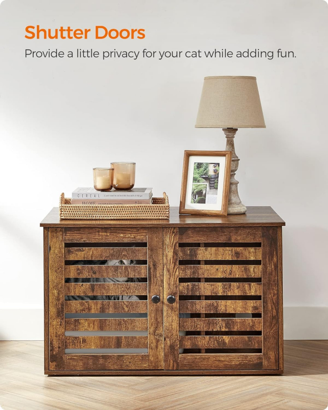 Schovajte mačací záchod do tejto štýlovej skrinky a poskytnite svojmu domácemu miláčikovi zaručené súkromie. Aj mačky potrebujú svoj vlastný priestor, kde sa môžu cítiť bezpečne a pohodlne. Táto skrinka je dokonalým riešením, ako udržať schránku na stelivo mimo dohľadu.