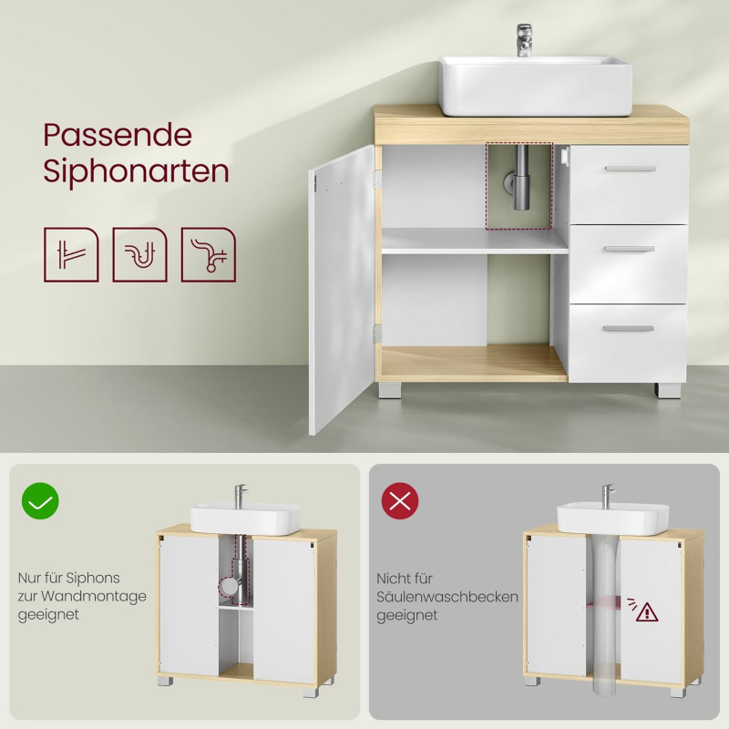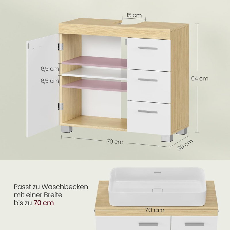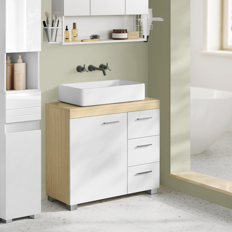 Overiť dostupnosť pre: VASAGLE Skrinka pod umývadlo so zásuvkami dub biely