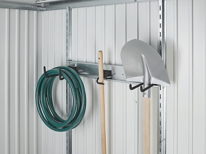 Súprava pozostáva z kombinačného háku, pre rukoväť a lopatu umiestnenou na nástennom regálu, pre drážkovanie medzi 2 podpernými koľajnicami (k dispozícii samostatne).