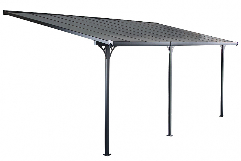 Záhradná hliníková pergola s šedým polykarbonátom.