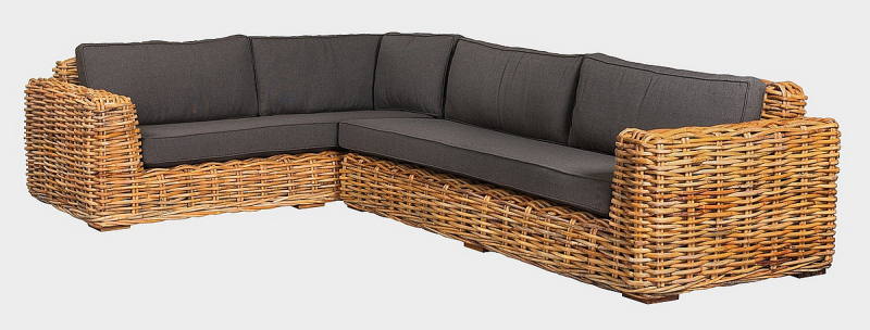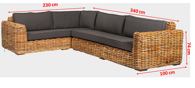 Luxusná ratanová pohovka NURU pravý roh s výpletom z prírodného 15 mm hrubého ratanu mandola. Zostava sa skladá:
