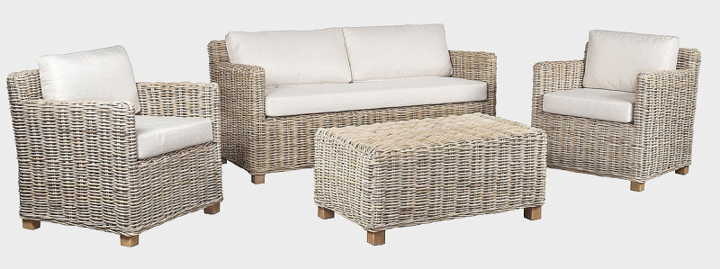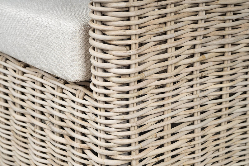 Brúsený ratan je ponechaný v prírodnom stave. Ratan cubu sa vyznačuje vysokou pevnosťou a odolnosťou. Na dotyk pôsobí veľmi príjemne. Súčasťou je aj kvalitné pohodlné polstrovanie. Sestava obsahuje: 1x Záhradné ratanové kreslo MIRABELLA, 1x Záhradný ratanový stolík MIRABELLA