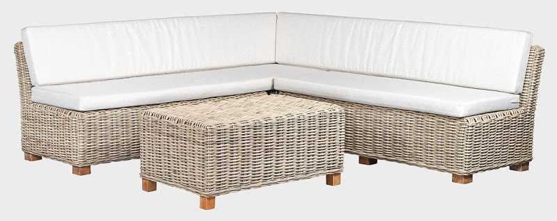 Záhradná ratanová zostava MIRABELLA III. z prírodného brúseného ratanu cubu. Brúsený ratan je ponechaný v prírodnom stave. Set sa skladá: