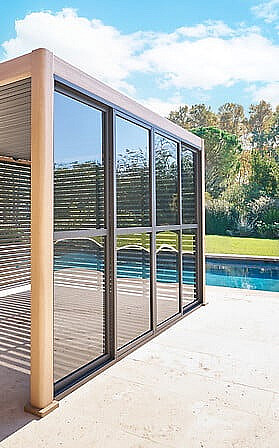 Pergola je vybavená elektrickou lamelovou strechou, ktorá sa dá otáčať pomocou diaľkového ovládača alebo aplikácie v telefóne a prepúšťať alebo filtrovať svetlo. Ideálne riešenie pre tých, ktorí chcú veľký priestor na vonkajšie posedenie.
