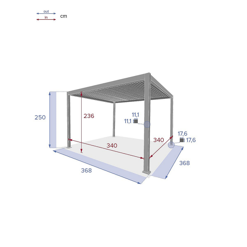 Odvod vody je vedený cez nohy pergoly.