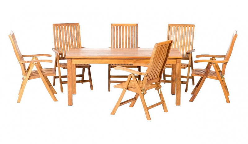Sestava obsahuje: 1x Teakový stôl GIOVANNI, 6x Skladacie teakové kreslo RIVA