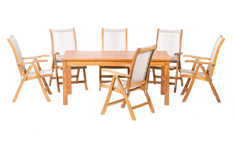 Sestava obsahuje: 1x Teakový stôl GIOVANNI, 6x Skladacie teakové kreslo DIVA