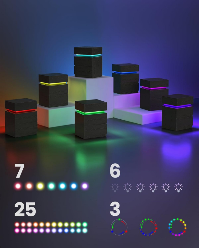 25 farieb, 6 úrovní jasu, 3 režimy blikania a 6 frekvencií blikania - pomocou priloženého diaľkového ovládania môžete nastaviť osvetlenie nočného stolíka LED a vytvoriť tak rôznu atmosféru.