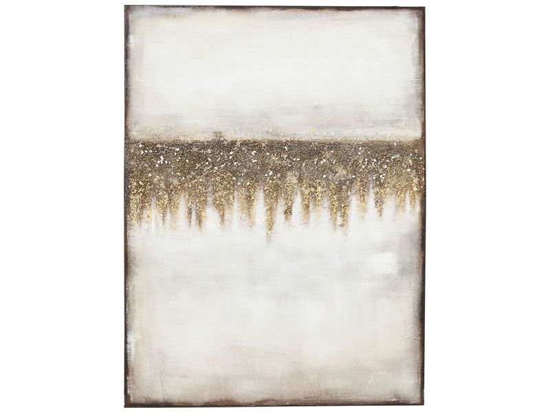 Ručne maľovaný obraz ideálny pre vertikálnu montáž na stenu. Tento ručne maľovaný abstraktný obraz je ideálnym kúskom, ktorý skrášli vašu obývačku. Jeho béžové a hnedé farby ozvláštnené zlatým nádychom a jeho abstraktný štýl vnesie elegantný nádych do vášho interiéru. Štýl tohto obrazu vám dáva možnosť vytvoriť nadčasovú atmosféru a očariť návštevu. Každý kus je jedinečný.Kare DesignNemecká značka Kare Design symbolizuje kreativitu a jedinečnosť. Už od roku 1981 obohacuje trh netradičnými kúskami, ktorým nechýba poriadna dávka štýlu a fantázie. V ich produktovom portfóliu nájdete širokú škálu nábytku, osvetlenia a bytových doplnkov. Značku Kare Design nájdete vo viac ako 200 obchodoch po celom svete. Dajte priestor svojej predstavivosti a naplňte svoj domov originálnym zariadením od Kare, ktoré si okamžite zamilujete. Výška 120 cm Šírka 90 cm Hĺbka 3,7 cm Váha 2,35 kg