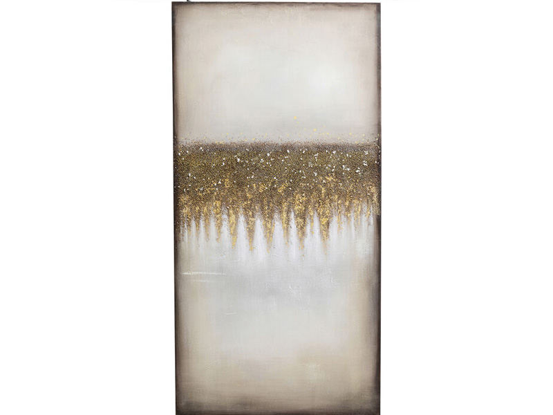 Toto umelecké dielo svojou veľkosťou dokonale nahradí fotografickú tapetu na stene a vyzerá oveľa pôsobivejšie. Abstraktný akrylový obraz v jemných prírodných farbách - každý kus je jedinečný. Trojrozmerná stuha s malými kamienkami a zlatými bodkami sa tiahne priamo cez obraz ako hviezdny prach.Kare DesignNemecká značka Kare Design symbolizuje kreativitu a jedinečnosť. Už od roku 1981 obohacuje trh netradičnými kúskami, ktorým nechýba poriadna dávka štýlu a fantázie. V ich produktovom portfóliu nájdete širokú škálu nábytku, osvetlenia a bytových doplnkov. Značku Kare Design nájdete vo viac ako 200 obchodoch po celom svete. Dajte priestor svojej predstavivosti a naplňte svoj domov originálnym zariadením od Kare, ktoré si okamžite zamilujete. Výška 200 cm Šírka 100 cm Hĺbka 3,7 cm Hmotnosť 4,4 kg