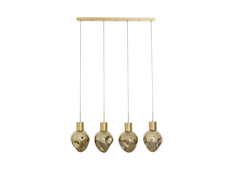 Lampa Amber je vyrobená z ocele potiahnutej titánom, čo zabezpečuje nielen jej krásny lesklý povrch, ale aj dlhodobú odolnosť. Galvanicky pokovené sklo jantárovej farby vytvorí útulnú atmosféru tepla a elegancie vo vašom interiéri. Lampa disponuje štyrmi tienidlami v rozmeroch 25 x 25 x 25 cm. Baldachýn má rozmery 3,50 x 100 x 5 cm a nastaviteľnú dĺžku drôtu od 50 do 160 cm sa ľahko prispôsobí vašim potrebám. Je vhodná pre žiarovku s objímkou E27, ktorá však nie je súčasťou balenia. Disponuje výkonom 40 wattov a frekvenciou 50 - 60 Hz. Nezáleží, či ju umiestnite nad jedálenský stôl, do obývačky alebo spálne, lampa Amber dodá vášmu interiéru sofistikovaný a útulný nádych.Max. výška160 cmMin. výška50 cm Hĺbka 5 cm Šírka 100 cm Hmotnosť 22 kgNapätie230 V