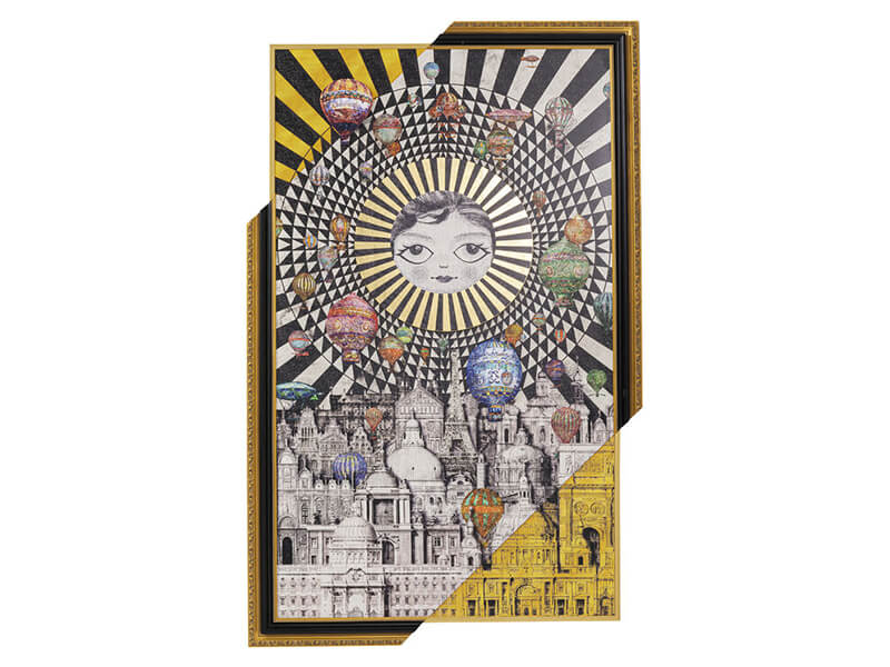 Originálne umelecké dielo môže odteraz visieť aj vo vašej domácnosti. Farebná potlač na umeleckom papieri s 3D efektom balónov lietajúcich nad slnkom rozpáleným mestom. Jemne zdobený rám z borovicového dreva v odtieňoch zlatej je spracovaný tak, aby budil dojem, že na hornom a spodnom okraji časť chýba. Vďaka svojej veľkosti bude dominantným prvkom aj v hotelových halách, recepciách, či reštauráciách.Kare DesignNemecká značka Kare Design symbolizuje kreativitu a jedinečnosť. Už od roku 1981 obohacuje trh netradičnými kúskami, ktorým nechýba poriadna dávka štýlu a fantázie. V ich produktovom portfóliu nájdete širokú škálu nábytku, osvetlenia a bytových doplnkov. Značku Kare Design nájdete vo viac ako 200 obchodoch po celom svete. Dajte priestor svojej predstavivosti a naplňte svoj domov originálnym zariadením od Kare, ktoré si okamžite zamilujete. Výška 260 cm Šírka 160 cm Hĺbka 6 cm Váha 34 kg