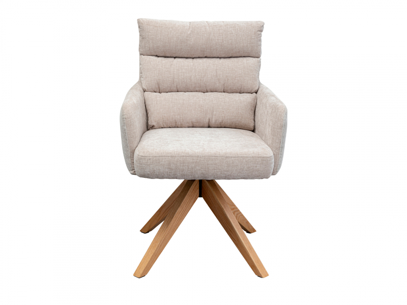Otočné kreslo Bosse s 360-stupňovým otáčaním ponúka množstvo výhod. Umožňuje ľahký pohyb a flexibilitu pri sedení, pričom poskytuje maximálne pohodlie. Konštrukciu tvorí masívne dubové drevo s ochranným lakovaným povrchom. Poťah je vyrobený z polyesteru v béžovej farbe. Bohaté čalúnenie s prešívanými švami zaručuje štýlový vzhľad. Bosse má moderný a elegantný dizajn, ktorý je ideálny pre súčasné interiéry. Výška 89 cm Šírka 59 cm Hĺbka 69 cm Výška sedu50 cm Nosnosť 110 kg Hmotnosť 15 kg