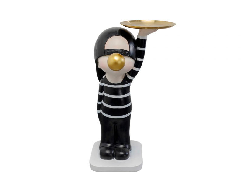 Nechajte sa okúzliť hravosťou tohto originálneho príručného stolíka Bubble, ktorý rozveselí každého, kto sa na neho pozrie. Stolík predstavuje chlapca so žuvačkovou bublinou v ústach, pričom drží praktický podnos, ktorý zároveň slúži ako odkladací priestor. Je vyrobený ručne, pričom stolová doska je z pomosadzovanej ocele. Umiestnite ho do vašej obývačky, pracovne alebo detskej izby a nechajte sa unášať jeho jedinečným šarmom a živými ručne maľovaným detailmi. Výška 73,5 cm Šírka 41,5 cm Hĺbka 34 cm Hmotnosť 9,5 kg