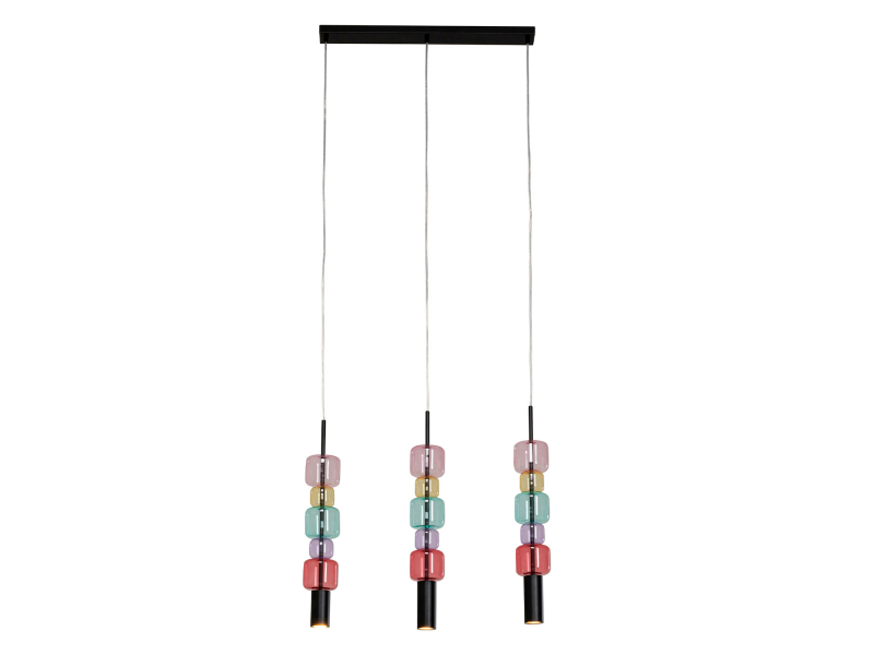 Visiaca lampa Candy Bar pridá do vašej miestnosti oslnivú eleganciu a štýl. Disponuje tromi svietidlami vyrobenými z čiernej ocele a pestrofarebného skla, ktoré pripomína korálky, čo vytvára pôsobivý kontrast. Tienidlo tejto lampy má priemer 6 cm a výšku 13 cm, čo z nej robí ideálny prvok na osvetlenie vášho interiéru. Baldachýn má rozmery 2,50 x 6 x 64 cm a možnosť nastaviteľnej výšky od 61 do 210 cm, čo vám umožňuje prispôsobiť si výšku lampy podľa vašich preferencií. Priehľadný drôt potiahnutý plastom dodáva lampe Candy Bar vizuálnu ľahkosť. Táto visiaca lampa je ako stvorená pre moderné a elegantné interiéry. Je vhodná pre žiarovku s objímkou GU10, ktorá však nie je súčasťou balenia. Disponuje výkonom 5 wattov a frekvenciou 50 - 60 Hz.V ponuke máme tiež rôzne iné varianty lampy Candy Bar.Kare DesignNemecká značka Kare Design symbolizuje kreativitu a jedinečnosť. Už od roku 1981 obohacuje trh netradičnými kúskami, ktorým nechýba poriadna dávka štýlu a fantázie. V ich produktovom portfóliu nájdete širokú škálu nábytku, osvetlenia a bytových doplnkov. Značku Kare Design nájdete vo viac ako 200 obchodoch po celom svete. Dajte priestor svojej predstavivosti a naplňte svoj domov originálnym zariadením od Kare, ktoré si okamžite zamilujete.Min. výška61 cmMax. Výška 210 cm Šírka 70 cm Hĺbka 10 cm Hmotnosť 4 kgNapätie230 V