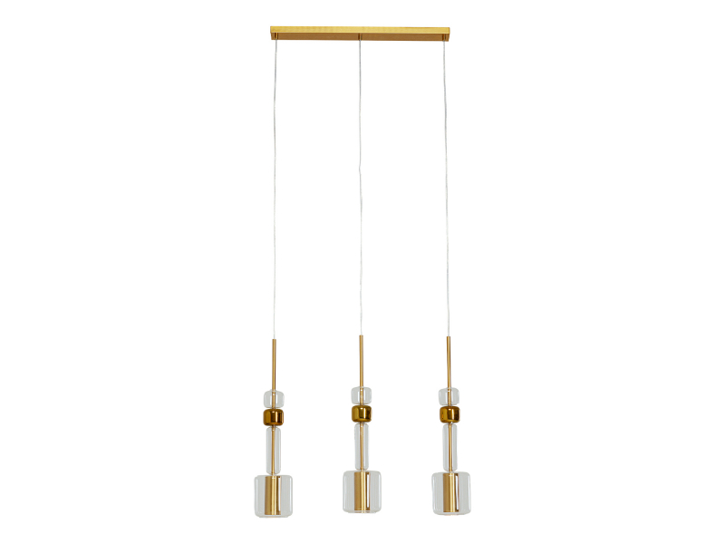 Visiaca lampa Candy pridá do vašej miestnosti oslnivú eleganciu a štýl. Disponuje tromi elegantnými svietidlami vyrobenými z lakovaného skla a ocele v zlatej farbe, vďaka čomu pôsobí luxusným dojmom. Tienidlá tejto lampy má priemer 13 cm a výšku 14,50 cm, čo z nej robí ideálny prvok na osvetlenie vášho interiéru. Baldachýn má rozmery 2,50 x 10 cm a možnosť nastaviteľnej výšky od 60 do 212 cm, čo vám umožňuje prispôsobiť si výšku lampy podľa vašich preferencií. Priehľadný drôt potiahnutý plastom dodáva lampe Candy vizuálnu ľahkosť. Táto visiaca lampa je ako stvorená pre moderné a elegantné interiéry. Je vhodná pre žiarovku s objímkou GU10, ktorá však nie je súčasťou balenia. Disponuje výkonom 5 wattov a frekvenciou 50 - 60 Hz.Kare DesignNemecká značka Kare Design symbolizuje kreativitu a jedinečnosť. Už od roku 1981 obohacuje trh netradičnými kúskami, ktorým nechýba poriadna dávka štýlu a fantázie. V ich produktovom portfóliu nájdete širokú škálu nábytku, osvetlenia a bytových doplnkov. Značku Kare Design nájdete vo viac ako 200 obchodoch po celom svete. Dajte priestor svojej predstavivosti a naplňte svoj domov originálnym zariadením od Kare, ktoré si okamžite zamilujete.Min. výška60 cmMax. Výška 212 cm Šírka 73 cm Hĺbka 13 cm Hmotnosť 3,8 kgNapätie230 V