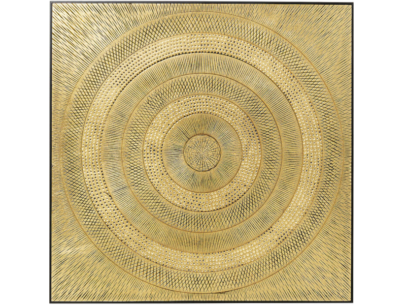 Zlato má niečo, čo nemá žiadna iná farba: tajomný lesk. Je to aj prísľub, ktorý predstavuje tie najúžasnejšie veci v živote: bohatstvo, moc, šťastie, slnko. Tento trblietavý obrázok hovorí o všetkých týchto veciach. A hovorí o ľuďoch, ktorí týmto malým umeleckým dielom udržiavajú starodávnu tradíciu rezbárstva.Kare DesignNemecká značka Kare Design symbolizuje kreativitu a jedinečnosť. Už od roku 1981 obohacuje trh netradičnými kúskami, ktorým nechýba poriadna dávka štýlu a fantázie. V ich produktovom portfóliu nájdete širokú škálu nábytku, osvetlenia a bytových doplnkov. Značku Kare Design nájdete vo viac ako 200 obchodoch po celom svete. Dajte priestor svojej predstavivosti a naplňte svoj domov originálnym zariadením od Kare, ktoré si okamžite zamilujete. Výška 120 cm Šírka 120 cm Hĺbka 6 cm Váha 19.6 kg