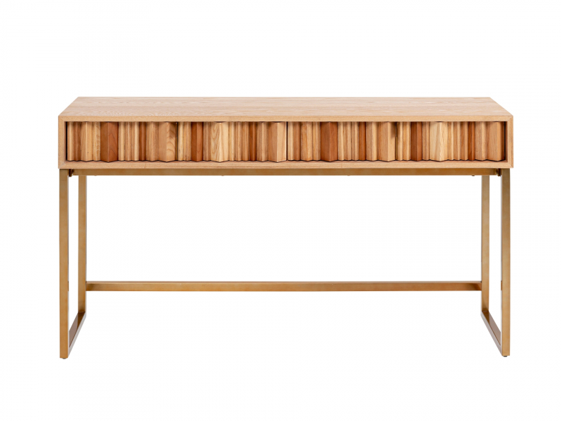 Jemný veľmi vkusný konzolový stolík Concertina v prírodne hnedej bude dobre kombinovateľnou voľbou. Zaujímavo riešená predná časť stolíka, je pútačom na tomto nábytku. Je to ručne vyrobená časť, z jaseňovej MDF, ktorá je vďaka tomu jedinečná a tým robí jedinečným aj samotný stolík. Na výrobu je použitá lakovaná oceľ, ktorá tvorí rám a rukoväť. Lakovaná MDF je použitá na korpus zásuviek a aj prednú časť. Maximálna nosnosť stolíka je 100 kg. Stolík ocenia milovníci prírodného štýlu alebo decentnej elegancie, vďaka jemnej ničím nerušenej farbe. Výborná voľba je kombinovateľnosť s komodou Concertina, vďaka čomu vytvoríte elegantné prepojenie týchto dvoch kúskov. Kare DesignNemecká značka Kare Design symbolizuje kreativitu a jedinečnosť. Už od roku 1981 obohacuje trh netradičnými kúskami, ktorým nechýba poriadna dávka štýlu a fantázie. V ich produktovom portfóliu nájdete širokú škálu nábytku, osvetlenia a bytových doplnkov. Značku Kare Design nájdete vo viac ako 200 obchodoch po celom svete. Dajte priestor svojej predstavivosti a naplňte svoj domov originálnym zariadením od Kare, ktoré si okamžite zamilujete. Šírka 135,5 cm Výška 78 cm Hĺbka 40 cm