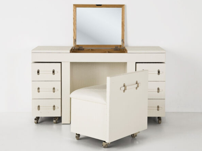 Luxusný kozmetický stolík Diva Make Up upúta každú ženu, ktorá potrebuje dostatok odkladacieho priestoru pre svoj make-up alebo doplnky. Tento štýlový a v luxusnom dizajne zhotovený stolík sa dá výborne zložiť, kde stolička a stolík tvoria jeden celok. V priestrannom interiéri stolíka je veľa miesta na kozmetické predmety, doplnky na úpravu vlasov, šperky a mnoho ďalšieho. Krásne vynikne v priestrannej kúpeľni, spálni alebo šatníku. Vďaka neutrálnej farbe ho hravo zladíte s vašim interiérom.Kare DesignNemecká značka Kare Design symbolizuje kreativitu a jedinečnosť. Už od roku 1981 obohacuje trh netradičnými kúskami, ktorým nechýba poriadna dávka štýlu a fantázie. V ich produktovom portfóliu nájdete širokú škálu nábytku, osvetlenia a bytových doplnkov. Značku Kare Design nájdete vo viac ako 200 obchodoch po celom svete. Dajte priestor svojej predstavivosti a naplňte svoj domov originálnym zariadením od Kare, ktoré si okamžite zamilujete. Výška 79,5 cm Šírka 138 cm Hĺbka 50,5 cm Hmotnosť 105 kg