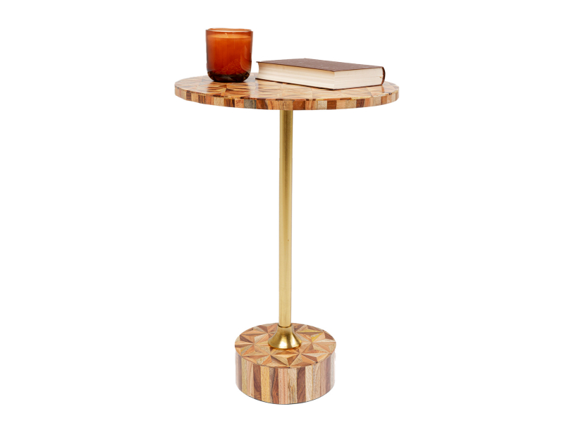Stolík Domero je prepracovaný do posledného detailu, aby zaujal vašu pozornosť a prispel k elegancii vášho interiéru. Jeho doska je zdobená geometrickým vzorom v tvare hviezd, ktoré vytvárajú moderný a nadčasový vzhľad. Masívny podstavec a vysoká podstavcová tyč v zlatej farbe pridávajú stolíku dotyk luxusu a sofistikovanosti. Rám stolíka je vyrobený z ocele s mosadzným pokovovaním, čo mu nielen dodáva štýlový dojem, ale zaručuje aj pevnosť a odolnosť. Vrchná doska a stojan sú vyrobené z kvalitného MDF materiálu potiahnutého polyresinom. Každý stolík je vyrobený ručne s láskou k detailu, čo zaručuje jedinečnosť každého kusu. S nosnosťou až 30 kg umožňuje umiestniť rôzne dekoračné predmety, knihy, jedlo alebo nápoje. Jeho nadčasový dizajn a elegancia vám poskytnú priestor na užívanie si pohodlia a štýlu vo veľkom.Kare DesignNemecká značka Kare Design symbolizuje kreativitu a jedinečnosť. Už od roku 1981 obohacuje trh netradičnými kúskami, ktorým nechýba poriadna dávka štýlu a fantázie. V ich produktovom portfóliu nájdete širokú škálu nábytku, osvetlenia a bytových doplnkov. Značku Kare Design nájdete vo viac ako 200 obchodoch po celom svete. Dajte priestor svojej predstavivosti a naplňte svoj domov originálnym zariadením od Kare, ktoré si okamžite zamilujete. Výška 50 cmPriemer40 cm Hrúbka 1,8 cm Hmotnosť 4,6 kgNosnosť30 kg