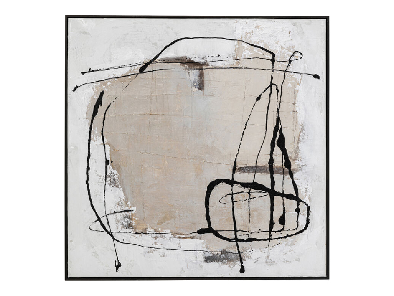 Originálny obraz na plátne s abstraktným motívom, ktorý pôsobí upokojujúco a umožní rozlet vašej fantázii. Obraz Dust je maľovaný ručne akrylovými farbami na plátno, pričom prevažujúca farba je béžová a sivá s čiernymi linkami. Obraz je umiestnený v drevenom ráme z borovice, ktorý je v prírodnom prevedení bez úprav. Na ráme je zo zadnej strany pripevnený háčik na zavesenie obrazu na stenu. Obraz je vďaka svojej veľkosti pomerne dominantý, avšak pôsobí nerušivým dojmom a do priestoru krásne zapadne. Kare DesignNemecká značka Kare Design symbolizuje kreativitu a jedinečnosť. Už od roku 1981 obohacuje trh netradičnými kúskami, ktorým nechýba poriadna dávka štýlu a fantázie. V ich produktovom portfóliu nájdete širokú škálu nábytku, osvetlenia a bytových doplnkov. Značku Kare Design nájdete vo viac ako 200 obchodoch po celom svete. Dajte priestor svojej predstavivosti a naplňte svoj domov originálnym zariadením od Kare, ktoré si okamžite zamilujete. Výška 100 cm Šírka 100 cm Hĺbka 2,8 cm Hmotnosť 4,5 kg