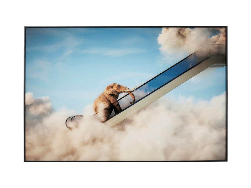 Hľadáte harmonický a upokojujúci doplnok do spálne? Obraz Elephant in the Sky vám pomôže zasnívať sa pred spaním. Prenesie vás do krajiny medzi oblakmi, odľahčí vašu myseľ a pomôže vám zrelaxovať. Obraz má jemné upokojujúce farby s prevažne modrým a bielym nádychom. Je vytlačený na umeleckom papieri a zarámovaný za bezpečnostným sklom tenkým čiernym rámom z hliníku. Hodí sa do moderných interiérov. Krásne vynikne nad posteľou. Vertikálne zavesenie.Kare DesignNemecká značka Kare Design symbolizuje kreativitu a jedinečnosť. Už od roku 1981 obohacuje trh netradičnými kúskami, ktorým nechýba poriadna dávka štýlu a fantázie. V ich produktovom portfóliu nájdete širokú škálu nábytku, osvetlenia a bytových doplnkov. Značku Kare Design nájdete vo viac ako 200 obchodoch po celom svete. Dajte priestor svojej predstavivosti a naplňte svoj domov originálnym zariadením od Kare, ktoré si okamžite zamilujete. Výška 100 cm Šírka 150 cm Hĺbka 3,5 cm Hmotnosť 17 kg