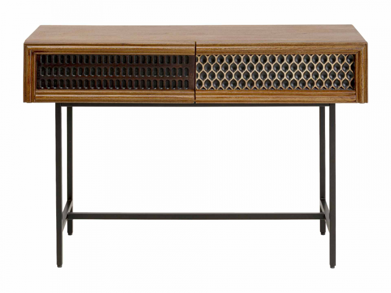 Konzolový stolík Gino je nádherným spojením prírodných materiálov a moderného dizajnu, ktorá vyniká svojou kvalitou a štýlom. Je vyrobený z masívneho lakovaného mangového dreva a lakovanej stredne hustej drevovláknitej dosky, čo zaručuje jeho dlhú životnosť a odolnosť. Stolík unesie až 20 kg, takže poskytuje dostatok úložného priestoru na vaše veci. Hodí sa do moderných a minimalistických interiérov, kde jeho elegantný dizajn doplnený oceľovými nohami dodá priestoru štýlový akcent. Skvele sa kombinuje s kovovými a drevenými doplnkami, čím vytvorí harmonický a nadčasový vzhľad vo vašom domove. Výška 76 cm Šírka 110 cm Hĺbka 40 cm Hmotnosť 23,8 kg