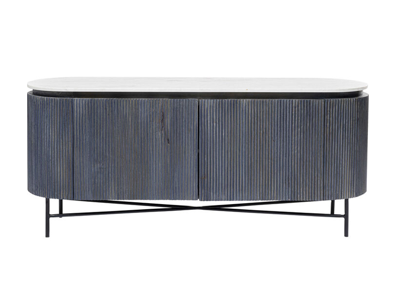 Glenn je elegantný príborník so svetlou mramorovou doskou a tmavosivým telom z masívneho dreva na filigránovom čiernom oceľovom ráme. S oválnym tvarom a vertikálne členenými prednými časťami je toto majstrovské dielo len ťažko prekonateľné. Úložný priestor je skrytý za dvomi dvierkami so skrytými zapustenými úchytmi na hornej hrane, s jednou pevnou policou.Tento príborník vyniká svojim valcovým tvarom inšpirovaným retro štýlom. Neváhajte ho skombinovať s TV stolíkom alebo príborníkom z rovnakej kolekcie pre zladenie interiéru!Kare DesignNemecká značka Kare Design symbolizuje kreativitu a jedinečnosť. Už od roku 1981 obohacuje trh netradičnými kúskami, ktorým nechýba poriadna dávka štýlu a fantázie. V ich produktovom portfóliu nájdete širokú škálu nábytku, osvetlenia a bytových doplnkov. Značku Kare Design nájdete vo viac ako 200 obchodoch po celom svete. Dajte priestor svojej predstavivosti a naplňte svoj domov originálnym zariadením od Kare, ktoré si okamžite zamilujete. Šírka 160 cm Hĺbka 45 cm Výška 75 cm Hmotnosť 81.10 kg