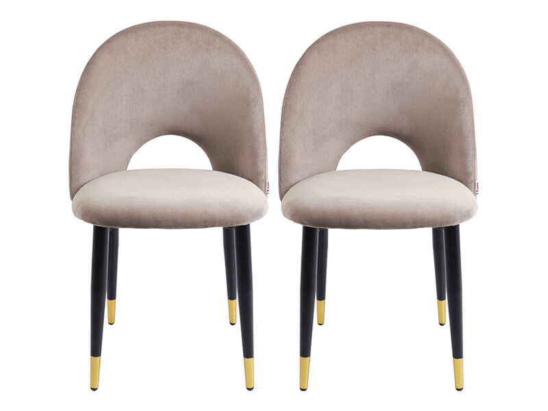 Sada dvoch jedálenských stoličiek s okrúhlym operadlom a jemným zamatovým čalúnením je ako stvorená pre milovníkov štýlu a nesmrteľnej elegancie. Otvor v operadlách dodáva spolu s čiernymi oceľovými nohami potrebnú vzdušnosť a ľahkosť. Nadčasová klasika, ktorá sa nestratí pri jedálenskom stole, ani v spálni pri toaletnom stolíku. Návod na stiahnutie TU.Kare DesignNemecká značka Kare Design symbolizuje kreativitu a jedinečnosť. Už od roku 1981 obohacuje trh netradičnými kúskami, ktorým nechýba poriadna dávka štýlu a fantázie. V ich produktovom portfóliu nájdete širokú škálu nábytku, osvetlenia a bytových doplnkov. Značku Kare Design nájdete vo viac ako 200 obchodoch po celom svete. Dajte priestor svojej predstavivosti a naplňte svoj domov originálnym zariadením od Kare, ktoré si okamžite zamilujete. Výška 84 cm Šírka 49 cm Hĺbka 54 cm Výška sedu46,5 cm Hmotnosť 6,6 kg