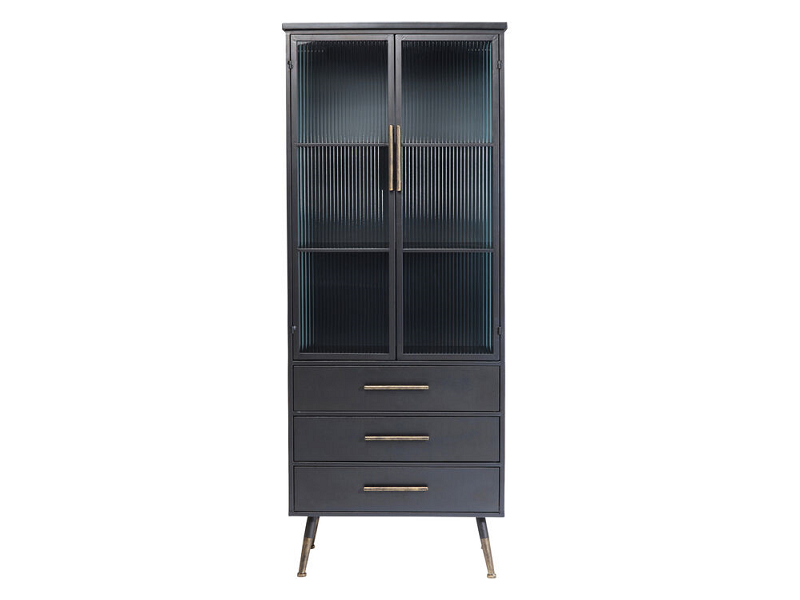 Praktická a štýlová vysoká skrinka v čiernej farbe s ležérnym vzhľadom sa hodí prakticky všade- do kuchyne, kúpeľne, pracovne, spálne aj obývačky. Tri priehradky za sklenenými dvierkami skrinky a tri zásuvky ponúkajú veľkorysý úložný priestor. Korpus, nohy a police tejto nadčasovej skrinky sú vyrobené z ocele s práškovým nástrekom čiernej farby, bočný rám a dvierka sú vytvorené z tvrdeného bezpečnostného skla a zásuvky sú vyrobené z MDF dosky. Dizajn skrinky privádzajú do dokonalosti rukoväte a nožičky v mosadznej farbe. Návod na stiahnutie TU Kare DesignNemecká značka Kare Design symbolizuje kreativitu a jedinečnosť. Už od roku 1981 obohacuje trh netradičnými kúskami, ktorým nechýba poriadna dávka štýlu a fantázie. V ich produktovom portfóliu nájdete širokú škálu nábytku, osvetlenia a bytových doplnkov. Značku Kare Design nájdete vo viac ako 200 obchodoch po celom svete. Dajte priestor svojej predstavivosti a naplňte svoj domov originálnym zariadením od Kare, ktoré si okamžite zamilujete. Výška 180 cm Šírka 72 cm Hĺbka 38 cm Hmotnosť 53 kg