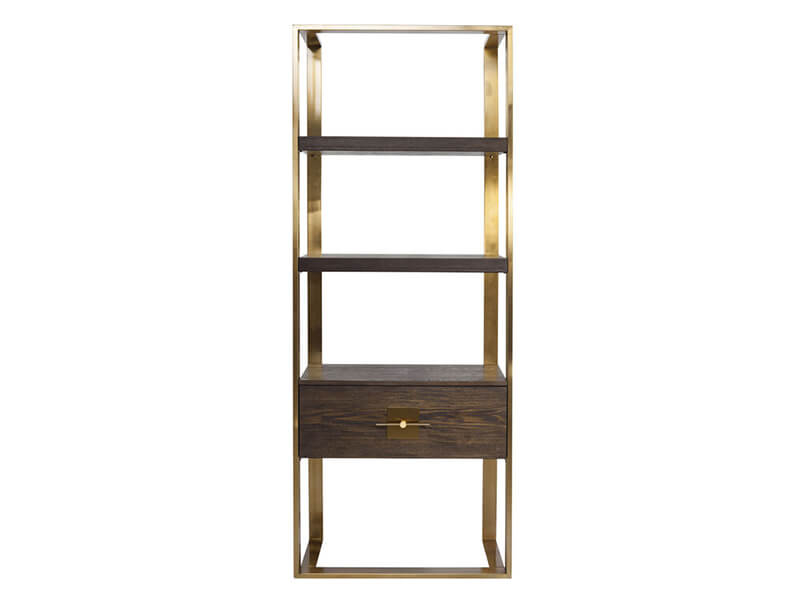 Elegantný a zároveň útulný. To je policový regál Osaka, ktorý bude pútať pozornosť každej návštevy. Kombinácia mosadzného kovu a tmavého jaseňového dreva pôsobí ležérne a nadčasovo. Dizajnové detaily, ako napríklad mosadzné kovanie na zásuvke, dodávajú regálu nádych okázalosti a luxusu. Ideálna kombinácia ku ďalším nábytkom série Osaka. Návod na stiahnutie TU.Kare DesignNemecká značka Kare Design symbolizuje kreativitu a jedinečnosť. Už od roku 1981 obohacuje trh netradičnými kúskami, ktorým nechýba poriadna dávka štýlu a fantázie. V ich produktovom portfóliu nájdete širokú škálu nábytku, osvetlenia a bytových doplnkov. Značku Kare Design nájdete vo viac ako 200 obchodoch po celom svete. Dajte priestor svojej predstavivosti a naplňte svoj domov originálnym zariadením od Kare, ktoré si okamžite zamilujete. Výška 210 cm Šírka 82,4 cm Hĺbka 45 cm Váha 42 kg