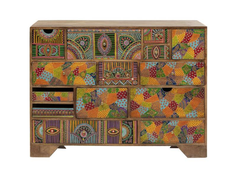 Príborník, ktorý vám svojou hravosťou rozjasní príbytok a nebudete z neho vedieť odtrhnúť zrak. Príborník je vyrobený ručne z prvotriedneho mangového dreva a tvorí ho 14 šuflíčkov rôznej veľkosti s farebným, mozaikovým vzorom a rôznymi aplikáciami. Paradise skvele vynikne ako solitérny kúsok a dobre sa ladí s dreveným, ale aj kovovým nábytkom. Dodáva sa zmontovaný. Kare DesignNemecká značka Kare Design symbolizuje kreativitu a jedinečnosť. Už od roku 1981 obohacuje trh netradičnými kúskami, ktorým nechýba poriadna dávka štýlu a fantázie. V ich produktovom portfóliu nájdete širokú škálu nábytku, osvetlenia a bytových doplnkov. Značku Kare Design nájdete vo viac ako 200 obchodoch po celom svete. Dajte priestor svojej predstavivosti a naplňte svoj domov originálnym zariadením od Kare, ktoré si okamžite zamilujete. Výška 88 cm Šírka 118 cm Hĺbka 40 cm Váha 60,5 kg