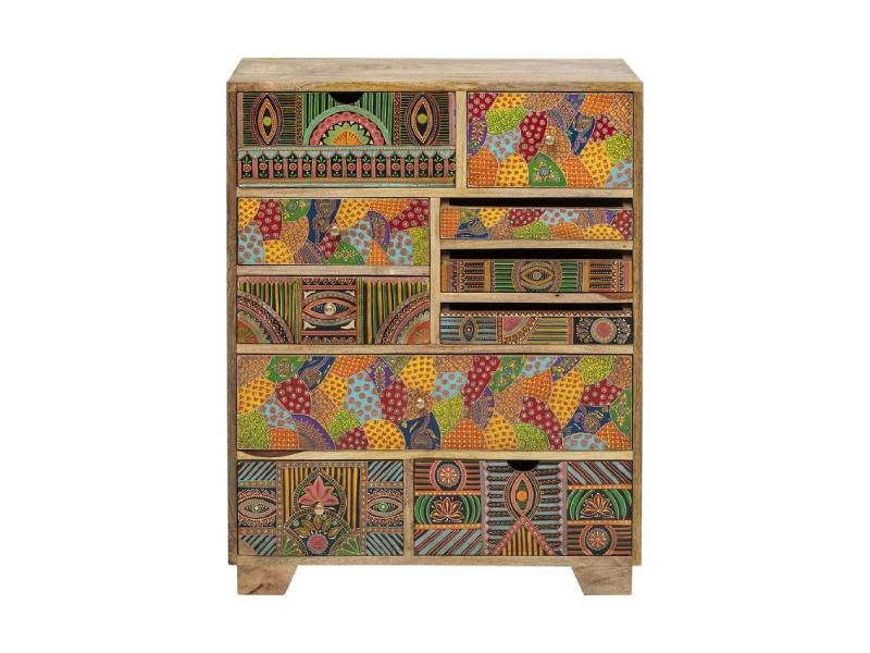 Komoda, ktorá vám svojou hravosťou rozjasní príbytok a nebudete z nej vedieť odtrhnúť zrak. Komoda je vyrobená ručne z prvotriedneho mangového dreva a tvorí ju 10 šuflíčkov rôznej veľkosti s farebným, mozaikovým vzorom a rôznymi aplikáciami. Paradise skvele vynikne ako solitérny kúsok a dobre sa ladí s dreveným, ale aj kovovým nábytkom. Komoda sa dodáva zmontovaná.Kare DesignNemecká značka Kare Design symbolizuje kreativitu a jedinečnosť. Už od roku 1981 obohacuje trh netradičnými kúskami, ktorým nechýba poriadna dávka štýlu a fantázie. V ich produktovom portfóliu nájdete širokú škálu nábytku, osvetlenia a bytových doplnkov. Značku Kare Design nájdete vo viac ako 200 obchodoch po celom svete. Dajte priestor svojej predstavivosti a naplňte svoj domov originálnym zariadením od Kare, ktoré si okamžite zamilujete. Výška 88 cm Šírka 68 cm Hĺbka 30 cm Váha 36 kg