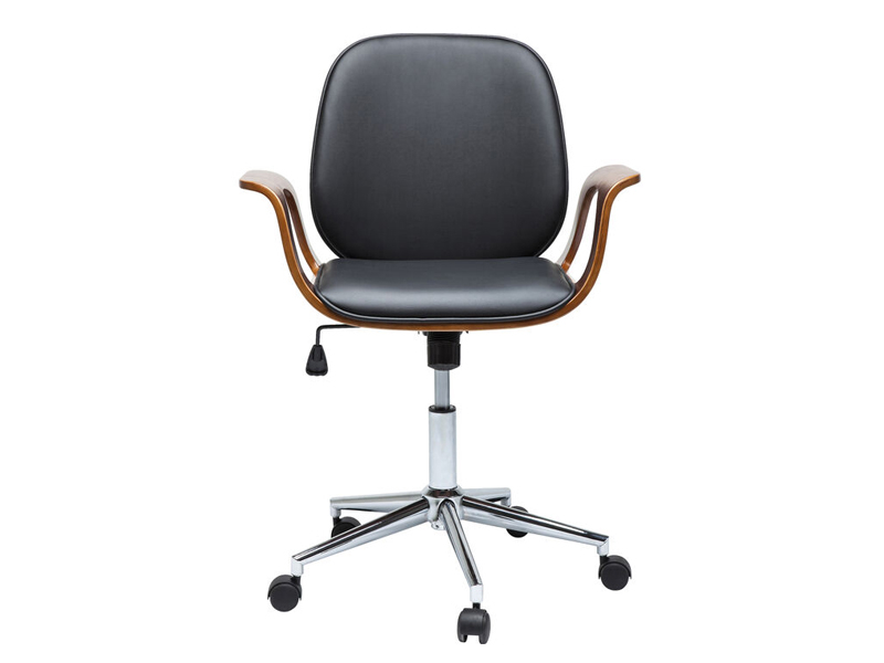 Kancelárske otočné kreslo má zaoblené tvary prispôsobené ľudskému telu a drevené podrúčky vám ponúkajú optimálny komfort. Šikmé podrúčky sú vyrobené z jemného orecha a dopĺňajú čalúnenie z umelej kože ako aj strieborný kovový rám. Výška sedadla sa dá individuálne nastaviť. Patron je možné skombinovať aj s inými stoličkami. Výška sedadla sa dá nastaviť medzi 46 a 60 cm.Kare DesignNemecká značka Kare Design symbolizuje kreativitu a jedinečnosť. Už od roku 1981 obohacuje trh netradičnými kúskami, ktorým nechýba poriadna dávka štýlu a fantázie. V ich produktovom portfóliu nájdete širokú škálu nábytku, osvetlenia a bytových doplnkov. Značku Kare Design nájdete vo viac ako 200 obchodoch po celom svete. Dajte priestor svojej predstavivosti a naplňte svoj domov originálnym zariadením od Kare, ktoré si okamžite zamilujete. Šírka 101 cm Výška 66,5 cm Hĺbka 56 cm Hmotnosť 12,5 kg