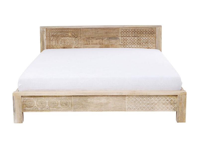 Masívna posteľ zo série Puro dodá vašej spálni nádych prírody. Konštrukcia postele je vyrobená z prírodného mangového dreva. Masívne čelo a spodná časť rámu sú zdobené krásnymi ručne vyrezávanými ornamentami. Každý kus je originál. Posteľ je vyrobená pre matrac s rozmerom 200x160cm čím poskytuje dostatok priestoru pre váš dobrý spánok. Drevené nohy dodávajú stabilitu. Posteľ sa dodáva bez roštov a matracov.Návod na stiahnutie nájdete TU.Kare DesignNemecká značka Kare Design symbolizuje kreativitu a jedinečnosť. Už od roku 1981 obohacuje trh netradičnými kúskami, ktorým nechýba poriadna dávka štýlu a fantázie. V ich produktovom portfóliu nájdete širokú škálu nábytku, osvetlenia a bytových doplnkov. Značku Kare Design nájdete vo viac ako 200 obchodoch po celom svete. Dajte priestor svojej predstavivosti a naplňte svoj domov originálnym zariadením od Kare, ktoré si okamžite zamilujete. Výška 76cm Šírka 169cm Dĺžka 218cm Váha 53kg