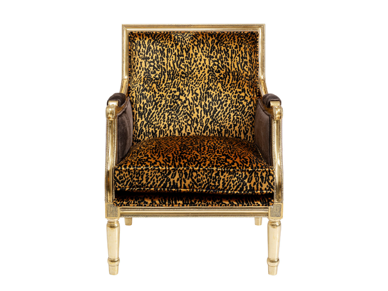 Ponorte sa do nádherného luxusu s kreslom Regency, ktoré okúzľuje svojim leopardím vzorom. So svojim dizajnom, ktorý navodzuje exotickú eleganciu, vytvára kreslo Regency štýlový dojem. Jeho konštrukcia z masívneho mangového dreva s lakovaným povrchom a mosadznými, pozlátenými oceľovými detailmi dodáva kreslu Regency neobyčajnú pevnosť a eleganciu. Toto kreslo je nielen vizuálnym potešením, ale aj pohodlným miestom na oddych. Čalúnenie z bavlny a viskózy so sedákom z polyuretánu zabezpečujú luxusný vzhľad a pohodlie. Zadná strana kresla vyniká sýto ružovou farbou, čo dodáva celkovému dizajnu ešte viac jedinečnosti a štýlu.Kare DesignNemecká značka Kare Design symbolizuje kreativitu a jedinečnosť. Už od roku 1981 obohacuje trh netradičnými kúskami, ktorým nechýba poriadna dávka štýlu a fantázie. V ich produktovom portfóliu nájdete širokú škálu nábytku, osvetlenia a bytových doplnkov. Značku Kare Design nájdete vo viac ako 200 obchodoch po celom svete. Dajte priestor svojej predstavivosti a naplňte svoj domov originálnym zariadením od Kare, ktoré si okamžite zamilujete. Výška 98 cm Šírka 70 cm Hĺbka 68 cm Výška sedu47 cm Hmotnosť 20 kgNosnosť120 kg