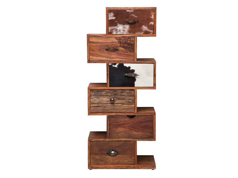 Inšpiráciou pre dizajnérov, ktorí vytvorili tento charakteristický rad nábytku, boli lesy presvetlené slnečným žiarením. Každý kus nábytku je originálny a jedinečný. Komoda Rodeo Zick Zack je vyrobená zo sheeshamového dreva, ktoré sa vyznačuje svojim jedinečným zafarbením, štruktúrou a kresbou. Navyše tento druh patrí do kategórie veľmi tvrdého a robustného dreva, ktoré sa neštiepi ani nekrúti. Rám komody sa vyznačuje čistými, modernými líniami, ktoré kontrastujú s prednými časťami zásuviek z hovädzej kože a s krásnymi rezbami. Úchytky zásuviek sú vyrobené z ocele. Kare DesignNemecká značka Kare Design symbolizuje kreativitu a jedinečnosť. Už od roku 1981 obohacuje trh netradičnými kúskami, ktorým nechýba poriadna dávka štýlu a fantázie. V ich produktovom portfóliu nájdete širokú škálu nábytku, osvetlenia a bytových doplnkov. Značku Kare Design nájdete vo viac ako 200 obchodoch po celom svete. Dajte priestor svojej predstavivosti a naplňte svoj domov originálnym zariadením od Kare, ktoré si okamžite zamilujete. Výška 120 cm Šírka 50 cm Hĺbka 30 cm Hmotnosť 41 kg