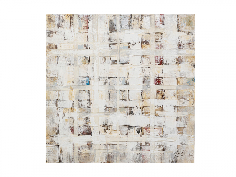 Ručne maľovaný obraz Treccia v bledých jemných tónoch od značky Kare Design bude veľmi decentným doplnkom do interiéru. Použité akrylové farby v béžovom odtieni ľahko zladíte s ostatnými doplnkami a zariadením. Bavlnené plátno je spevnené panelom masívneho borovicového dreva, čo dodáva obrazu stabilitu a umožňuje jeho vertikálne a aj horizontálne upevnenie na stenu. Šírka120 cm Výška 120 cm Hĺbka 3,8 cm Váha 8,5 kg