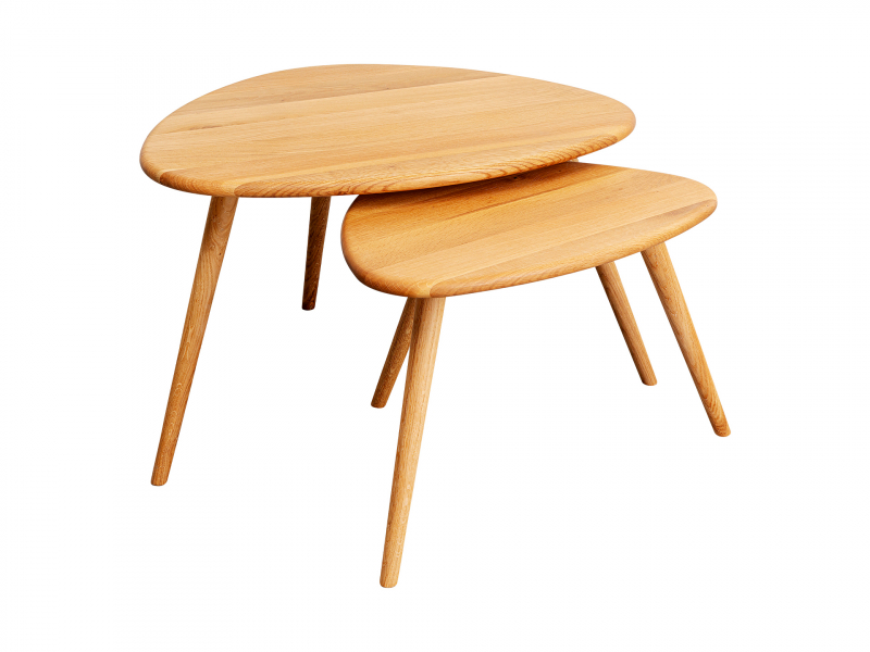 Set 2 príručných stolík Vigo kombinuje prirodzenú krásu masívneho dubového dreva s moderným dizajnom. Ich asymetrické stolové dosky s hrúbkou 25 mm dodávajú stolíku jedinečný vzhľad, ktorý vynikne v každom interiéri. Tri stabilné nohy poskytujú bezpečnú oporu a udržia maximálnu záťaž až 15 kg. Set stolíkov je navyše FSC certifikovaný, čo znamená, že drevo pochádza z udržateľne spravovaných lesov. V prípade obmedzených priestorových možností ich tiež viete jednoducho zasunúť pod seba.Menší stolík Výška 36cm Šírka 52 cm Hĺbka 38 cm Väčší stolík Výška 40 cm Šírka 67 cm Hĺbka 51 cm Hmotnosť 8,6 kgNosnosť15 kg
