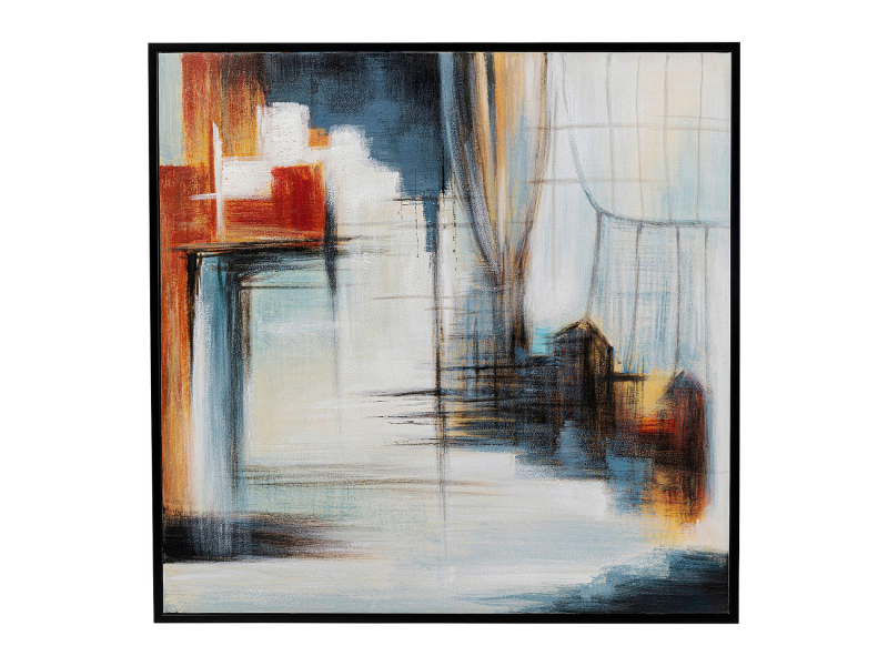Zarámovaný obraz Visione je jedinečným umeleckým dielom, ktoré oživí každú stenu. Je maľovaný ručne na bavlnené plátno, takže každý kus je jedinečný. Abstraktný dizajn v jasných farbách je v kontraste s čiernym rámom a dodáva miestnosti pôsobivú atmosféru. Tento obraz je ako stvorený na obohatenie interiéru moderných i klasických domácností. Svojim zaujímavým vzhľadom a mohutnou veľkosťou poteší každého, kto ho uvidí. Je vybavený háčikmi na vertikálne upevnenie na stenu.Kare DesignNemecká značka Kare Design symbolizuje kreativitu a jedinečnosť. Už od roku 1981 obohacuje trh netradičnými kúskami, ktorým nechýba poriadna dávka štýlu a fantázie. V ich produktovom portfóliu nájdete širokú škálu nábytku, osvetlenia a bytových doplnkov. Značku Kare Design nájdete vo viac ako 200 obchodoch po celom svete. Dajte priestor svojej predstavivosti a naplňte svoj domov originálnym zariadením od Kare, ktoré si okamžite zamilujete. Výška 100 cm Šírka 100 cm Hĺbka 4 cm Hmotnosť 5 kg
