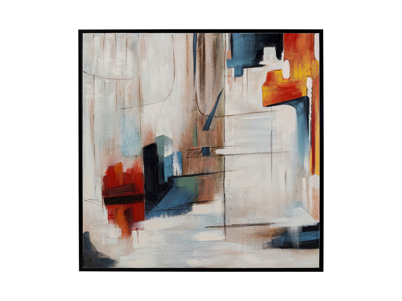 Zarámovaný obraz Visione je jedinečným umeleckým dielom, ktoré oživí každú stenu. Je maľovaný ručne na bavlnené plátno, takže každý kus je jedinečný. Abstraktný dizajn v jasných farbách je v kontraste s čiernym rámom a dodáva miestnosti pôsobivú atmosféru. Tento obraz je ako stvorený na obohatenie interiéru moderných i klasických domácností. Svojim zaujímavým vzhľadom a mohutnou veľkosťou poteší každého, kto ho uvidí. Je vybavený háčikmi na vertikálne upevnenie na stenu.Kare DesignNemecká značka Kare Design symbolizuje kreativitu a jedinečnosť. Už od roku 1981 obohacuje trh netradičnými kúskami, ktorým nechýba poriadna dávka štýlu a fantázie. V ich produktovom portfóliu nájdete širokú škálu nábytku, osvetlenia a bytových doplnkov. Značku Kare Design nájdete vo viac ako 200 obchodoch po celom svete. Dajte priestor svojej predstavivosti a naplňte svoj domov originálnym zariadením od Kare, ktoré si okamžite zamilujete. Výška 100 cm Šírka 100 cm Hĺbka 4 cm Hmotnosť 5 kg