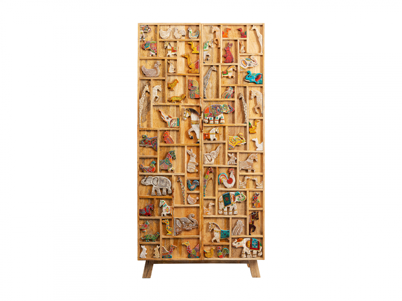Táto drevená skriňa je dekoratívnym aj funkčným riešením na odkladanie vecí vo vašej domácnosti, či už v predsieni, spálni alebo obývačke. Každý kus je ručne vyrobený a ručne maľovaný. Je vyrobená z lakovaného masívneho mangového dreva v Indii v tradičných dielňach. Oceľové kovanie s práškovým nástrekom v odtieni matnej mosadze štýlovo dopĺňa dizajn. Tri pevné police vytvárajú dostatok úložného priestoru. Pevná konštrukcia a prírodný materiál dreva robia tento kus nábytku obzvlášť odolným. Dodáva sa zmontované. Výška163 cm Šírka 81 cm Hĺbka 36 cm Hmotnosť 55 kgNosnosť40 kg