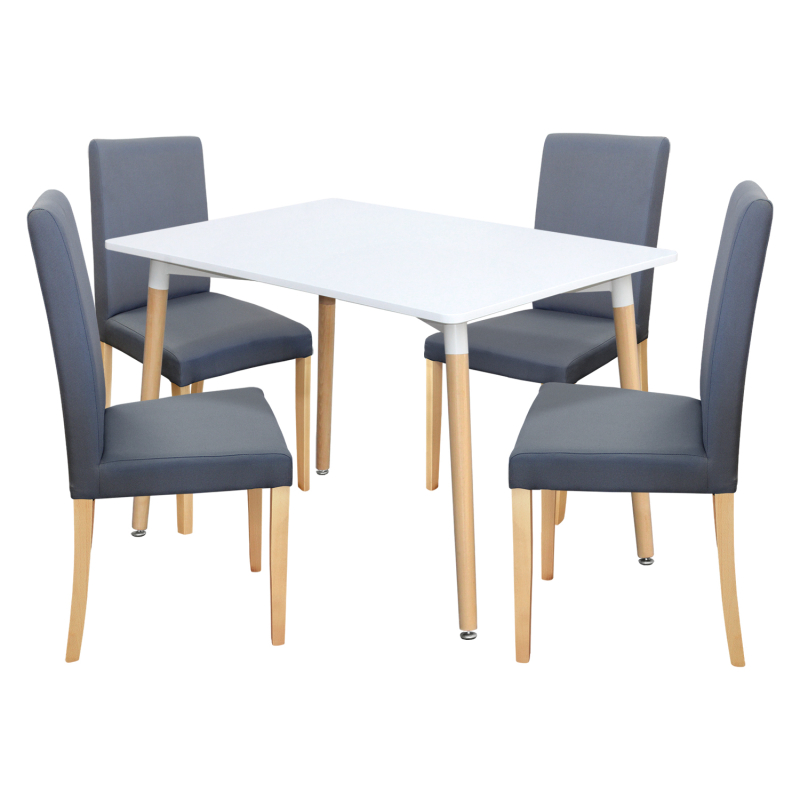 Jedálenský stôl UNO 120x80 biely + 4 stoličky PRIMA sivá/svetlé nohy