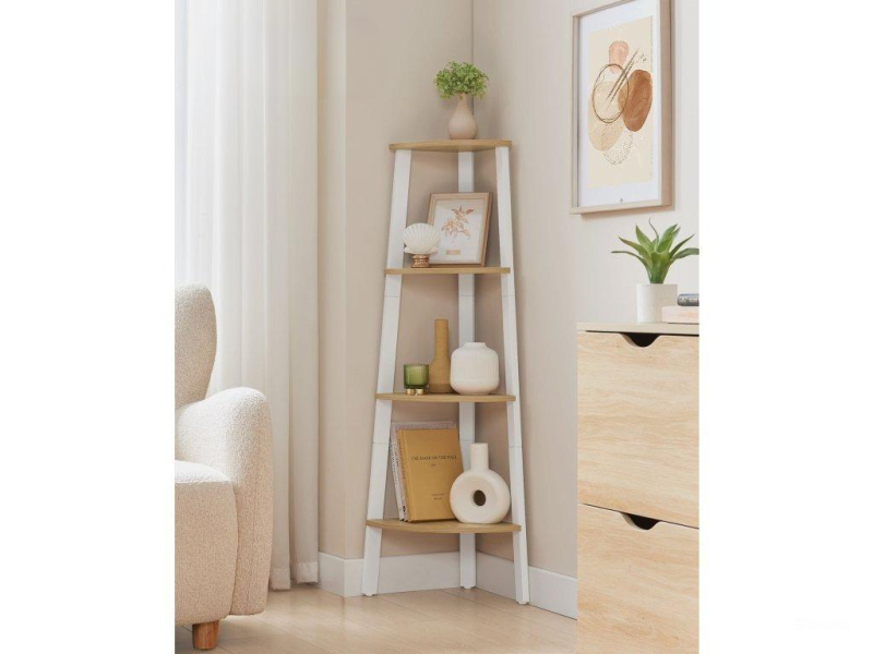 Štvorposchodový regál s rozmermi 33,4 x 33,4 x 125 cm je navrhnutý tak, aby vám pomohol naplno využiť rohový priestor. Môžete ho použiť na efektívne usporiadanie a vystavenie kníh, rastlín, dekorácií a iných predmetov.