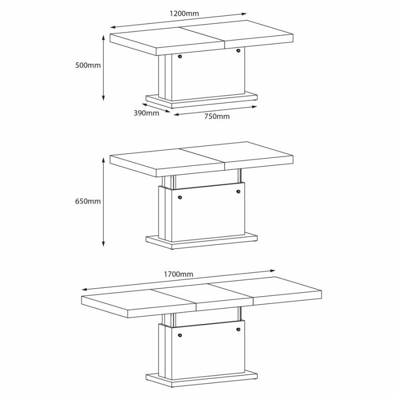 Konferenčný stolík vo veľmi zaujímavom dizajne a praktickom prevedení. Možno ho rozložiť a zdvihnúť, dá sa tak získať stôl, ktorý ľahko nahradí stôl jedálenský. V kombinácii s televíznymi stolíky z našej ponuky celkom iste dáte moderny nádych vášmu bývaniu.